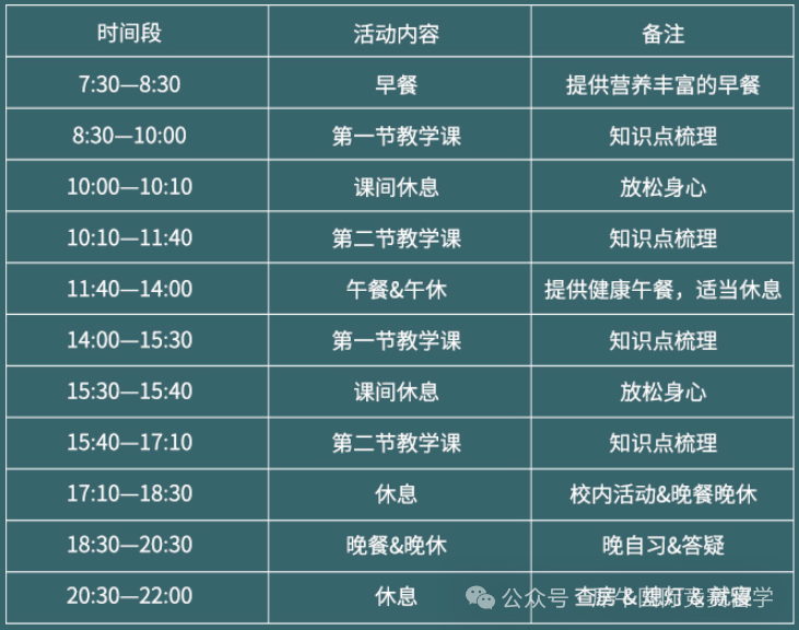周一至周六上课,周日休息调整,学习状态拉满不疲劳