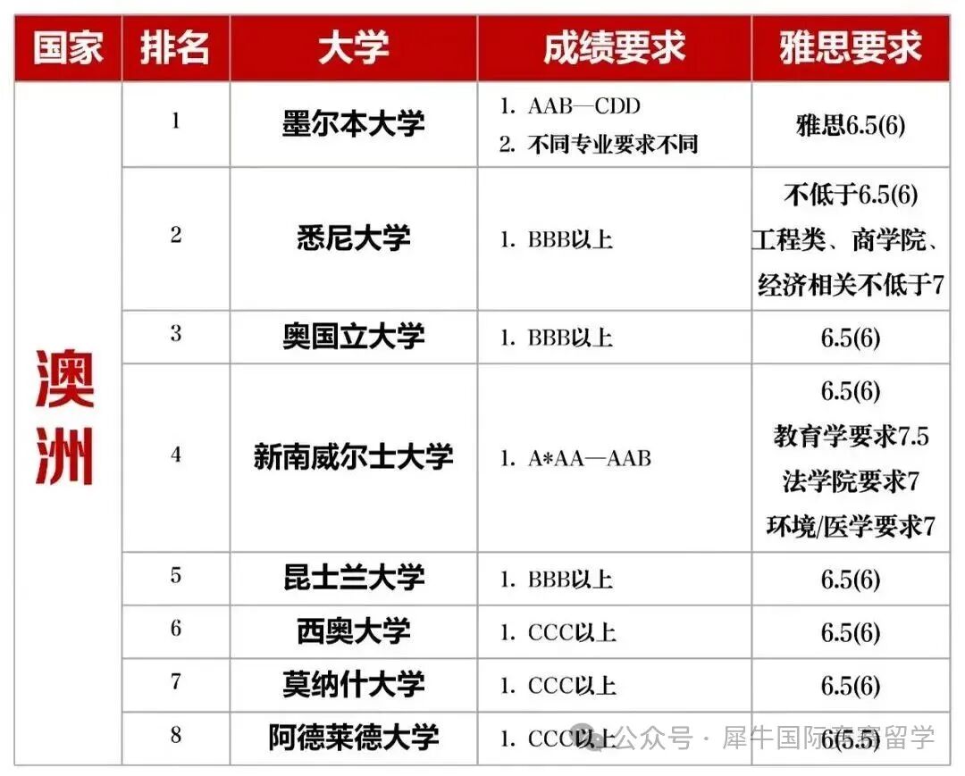 四、澳洲:分数换算透明,英澳联申性价比拉满