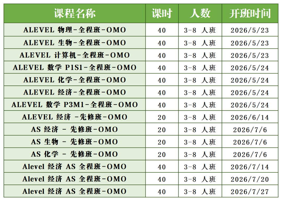 犀牛A-level暑期培训课程火热开班中,开设有alevel暑期先修班/全程班,任你选择,线上线下同步授课哦!